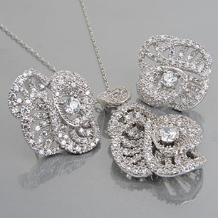 Комплект свадебный бело-серебристый с золотым покрытием 18K 1 мкр с цирконами (фианитами) арт.XG23 0120(id208732)