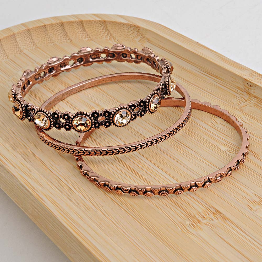 Браслет бежевый с гальваническим покрытием под медь со стразами