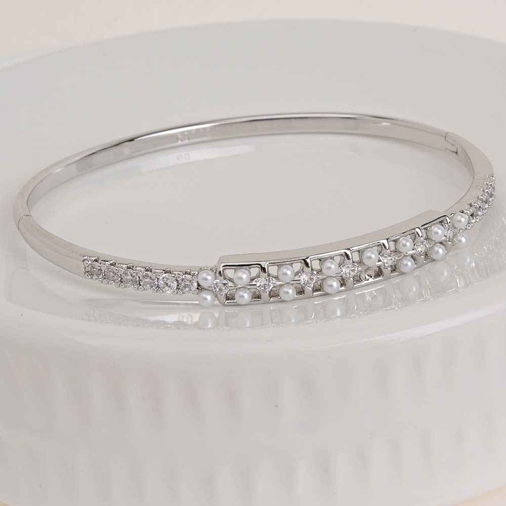 Браслет с родиевым покрытием с цирконами (фианитами)