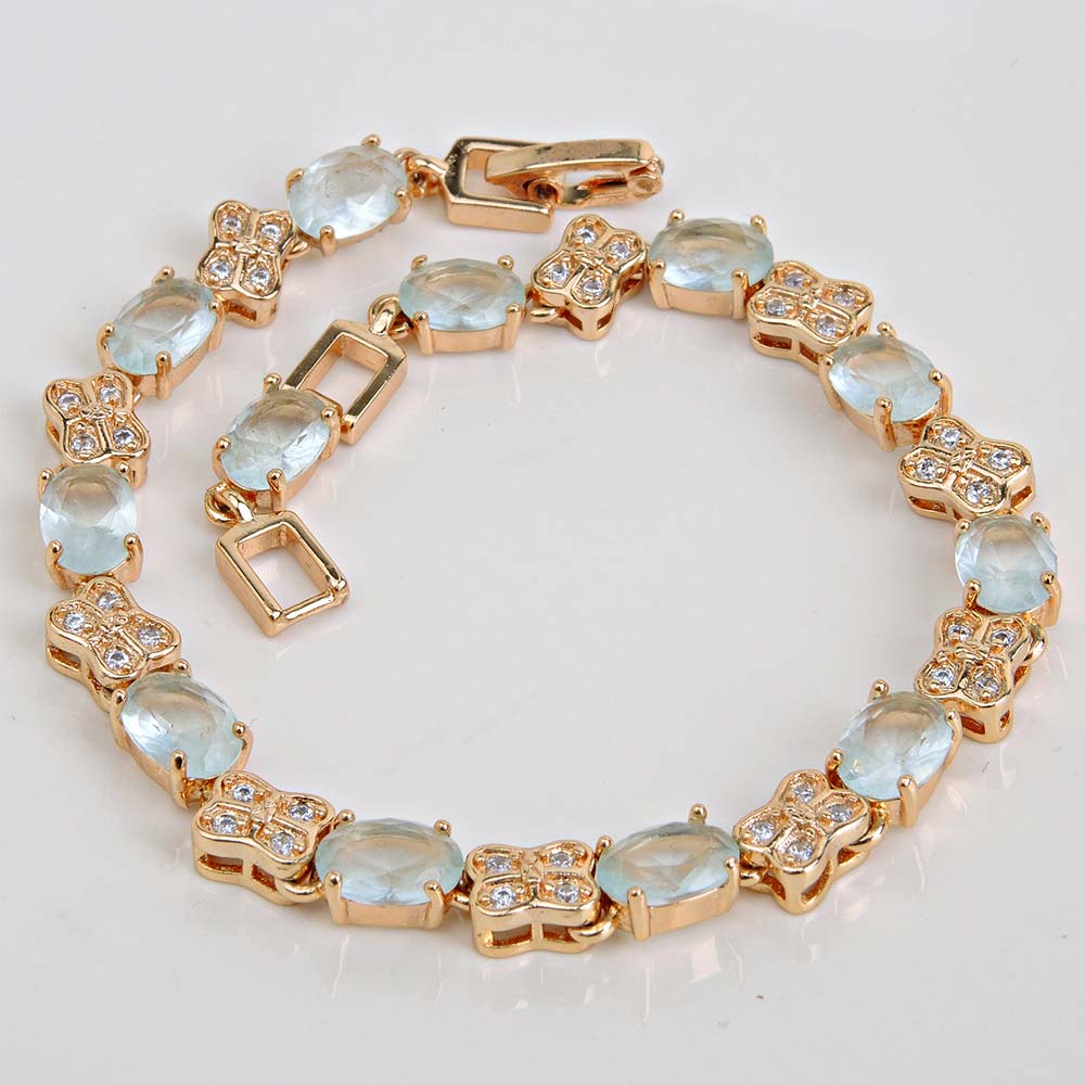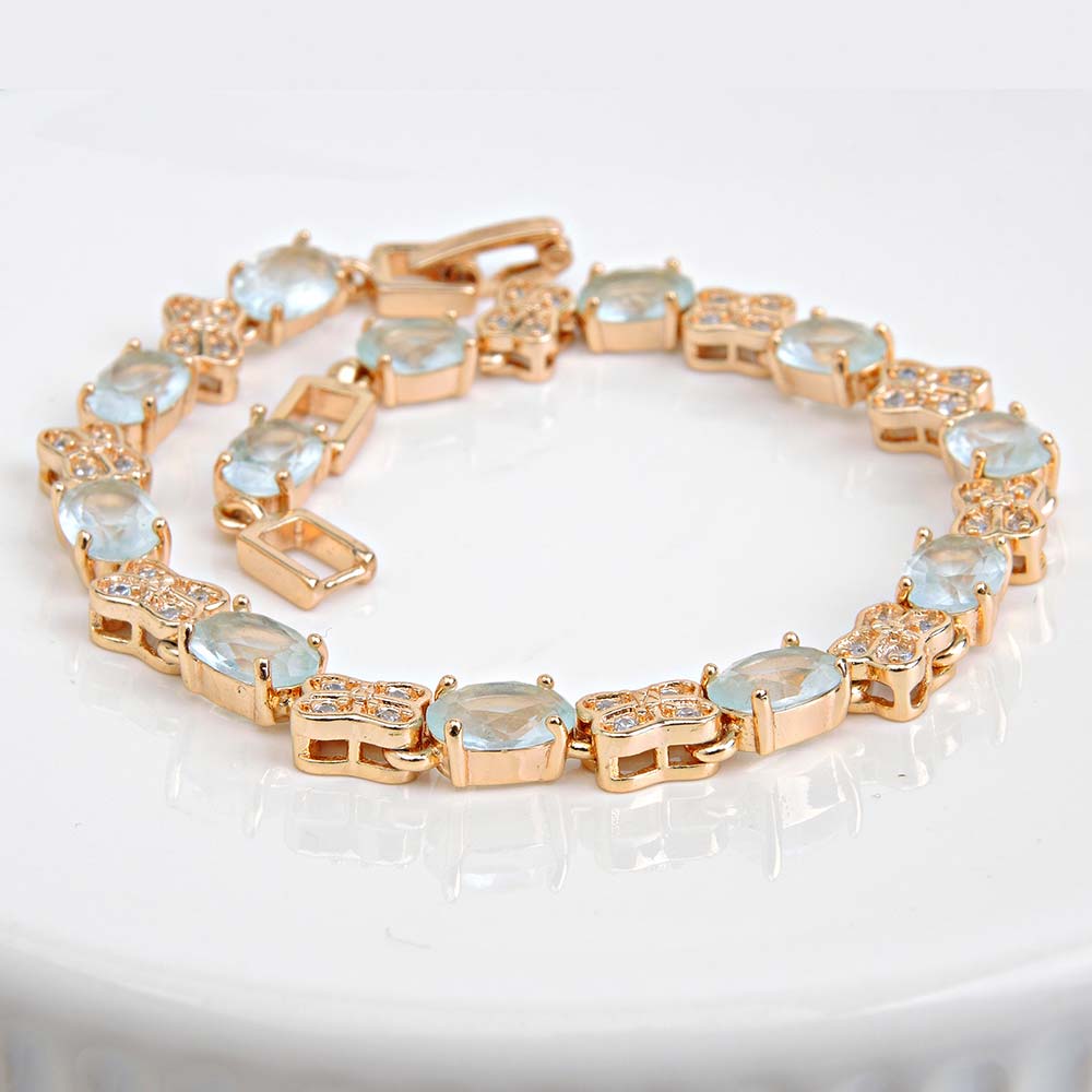 дл 19см браслет(вставки:цирконы,голубые,покрытие:золото)