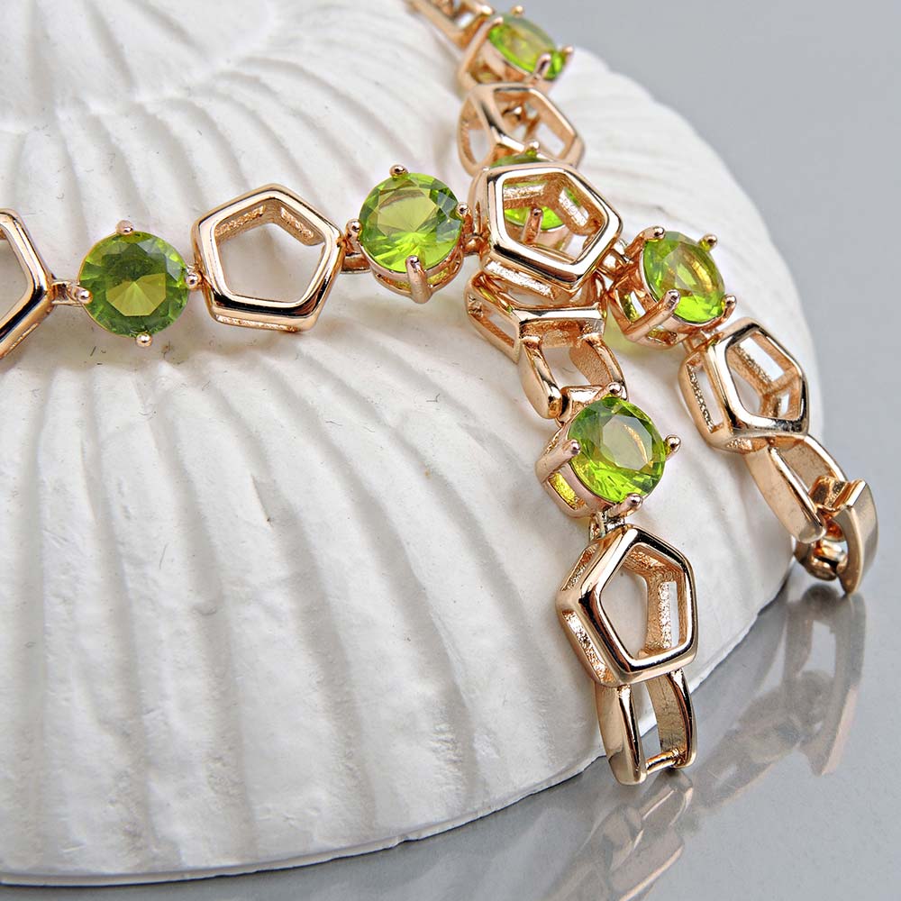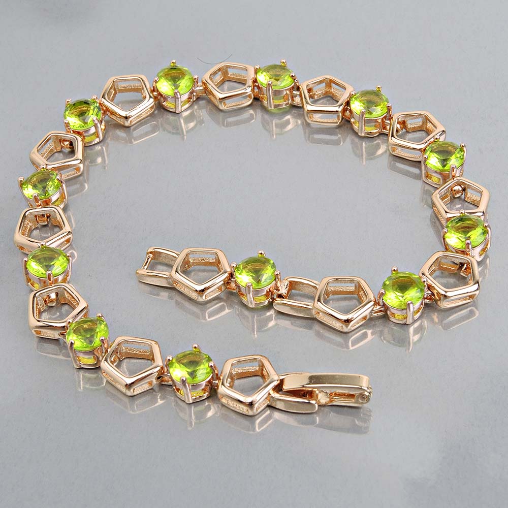 дл 19см браслет(вставки:цирконы,светло-зеленые,покрытие:золото)