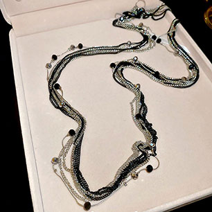 • Длина до груди, матине. Это уже праздничное украшение, от которого даже строгий костюм станет торжественным.