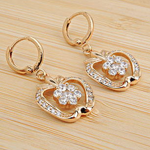 Серьги с английским замком с золотым покрытием 18K 1 мкр с цирконами (фианитами) арт.XG11 0613-4(id222908)