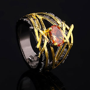 Кольцо в винтажном стиле с золотым покрытием 14K 1 мкр с цирконами (фианитами) арт.51 2197(id288072)