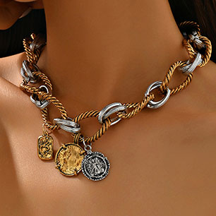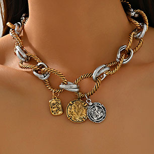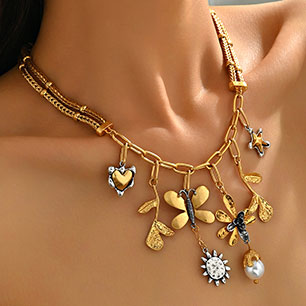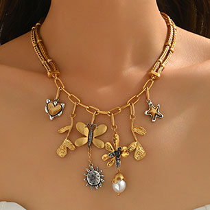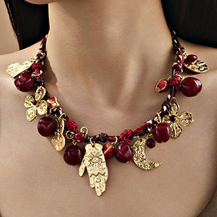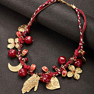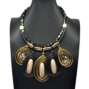 Колье в винтажном стиле с золотым покрытием 14K 1 мкр со стеклянными вставками арт.22 6743(id269489)