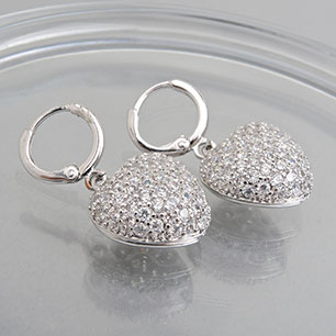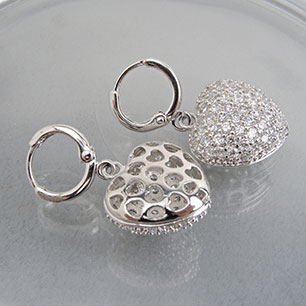 Серьги с замком кольцо с родиевым покрытием с цирконами (фианитами) арт.18 1233(id280139)