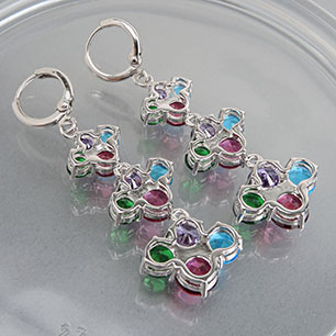 Серьги с замком кольцо с родиевым покрытием с цирконами (фианитами) арт.18 1235(id280141)