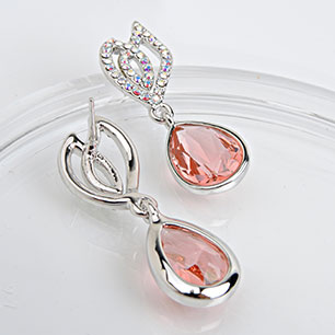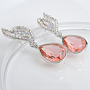 Серьги на гвоздиках розовые с родиевым покрытием с кристаллами SWAROVSKI арт.BL300644A23Y0(id190940)