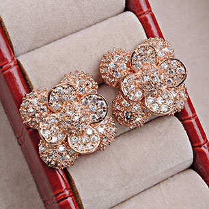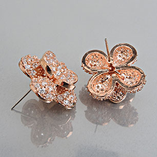 Серьги на гвоздиках розовые с гальваническим покрытием под золото со стразами арт.RG0847470036-2(id192465)