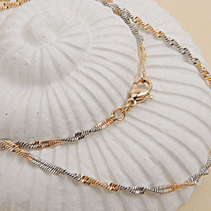 Цепи под золото, которые не темнеют, изготавливаются из ювелирной и хирургической стали 316L. Благодаря оксидному слою на поверхности, она не вступает в соединение с покрытием — дефект цвета исключен. Металл экологичен и не оказывает вреда для кожи.