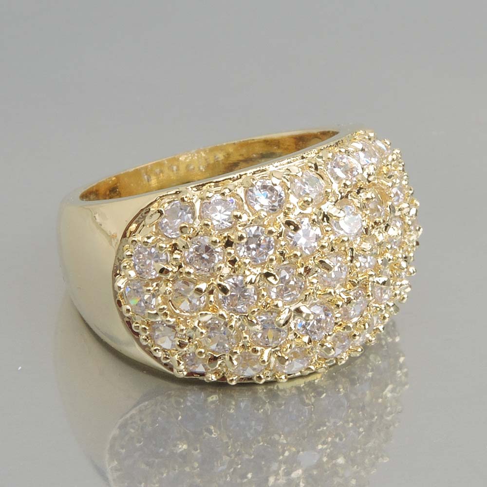 Кольцо белое с золотым покрытием 14K 1 мкр с цирконами (фианитами)