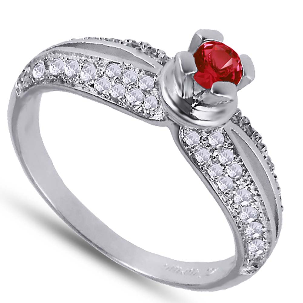 Кольцо красное с родиевым покрытием с цирконами (фианитами)