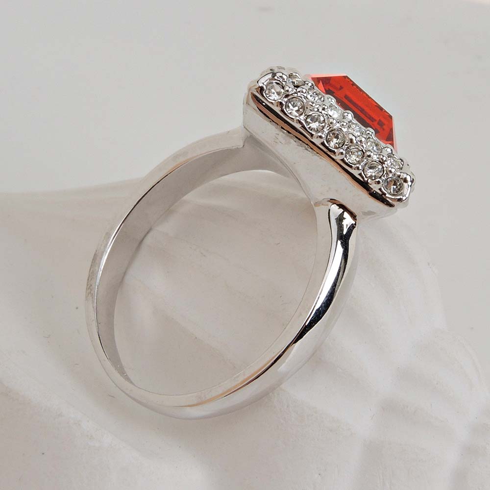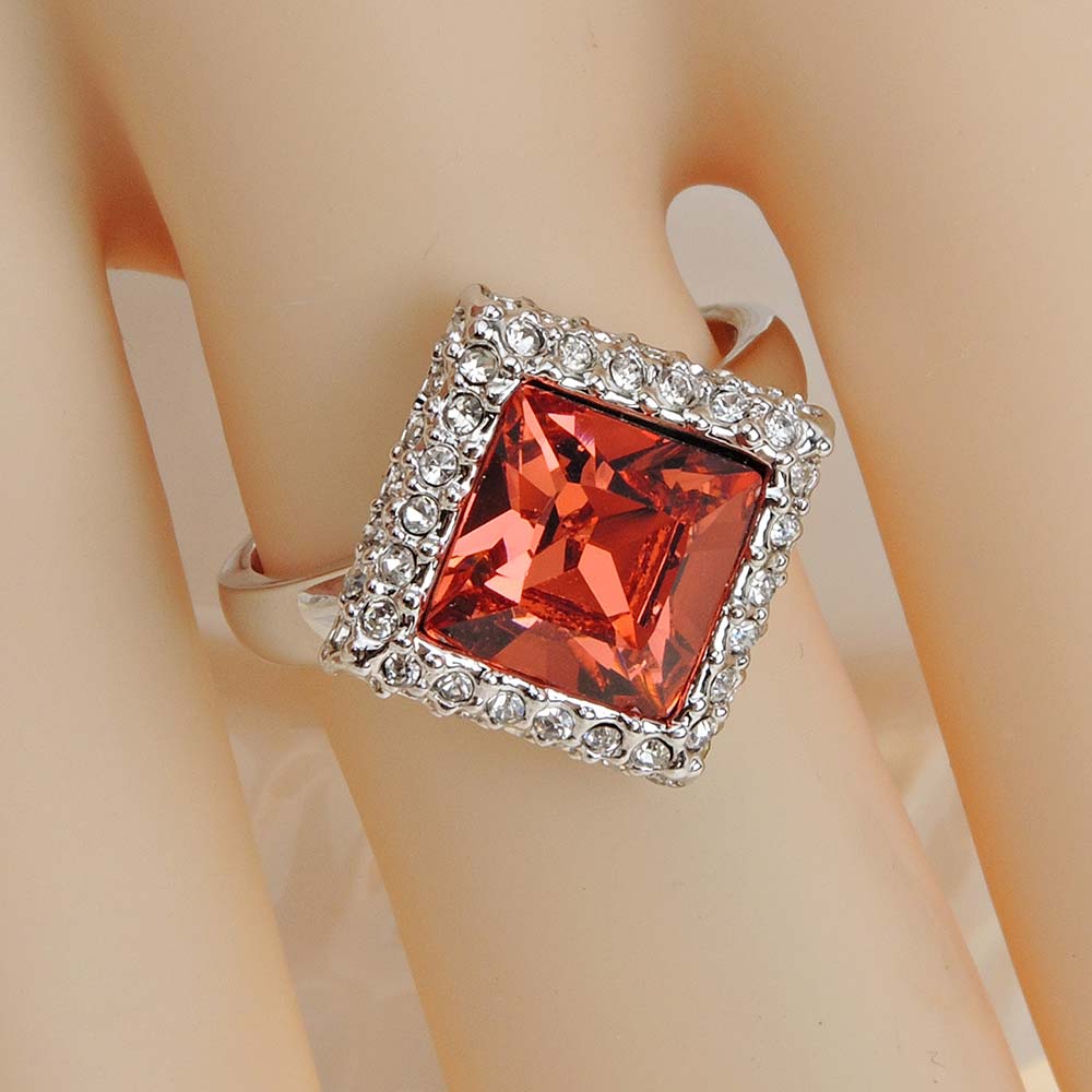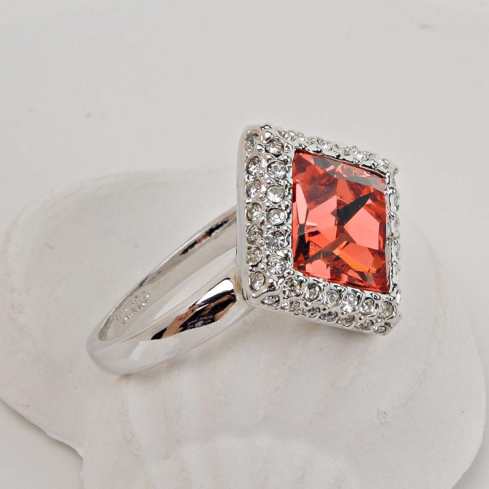 Кольцо розовое с родиевым покрытием с кристаллами SWAROVSKI
