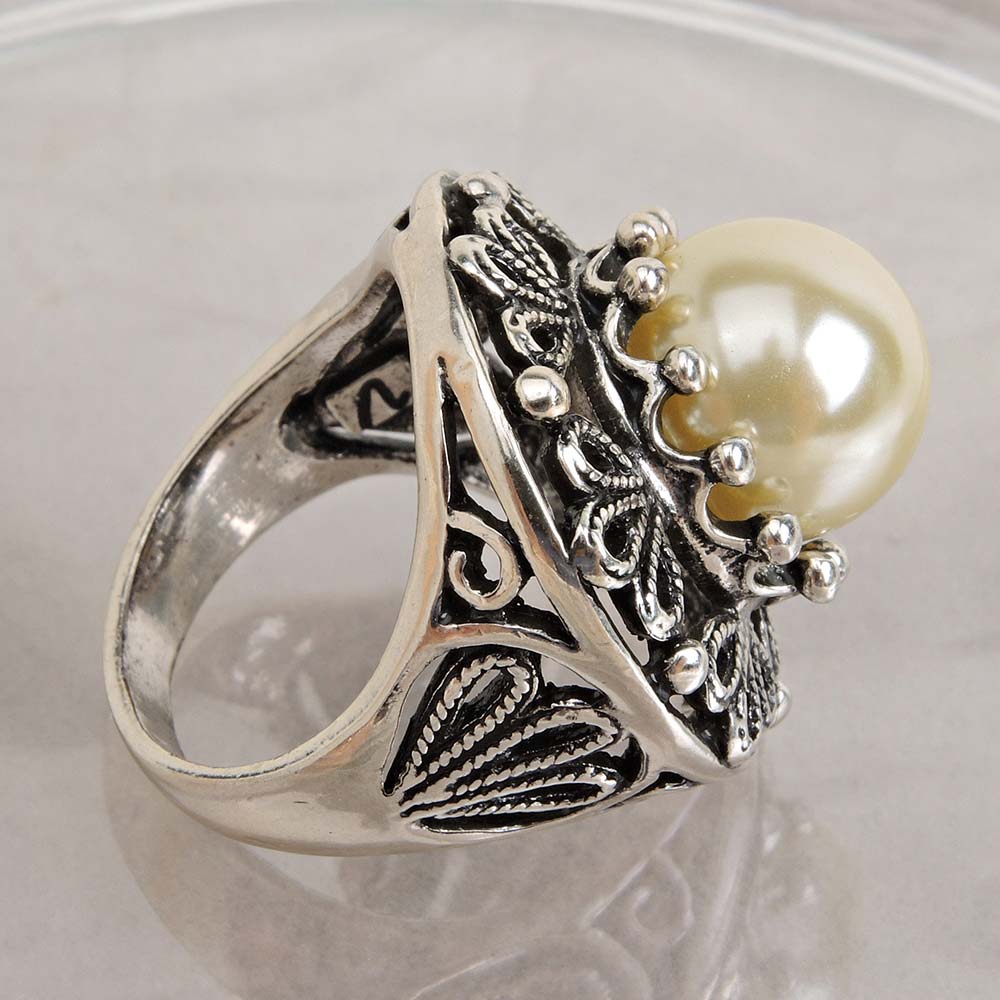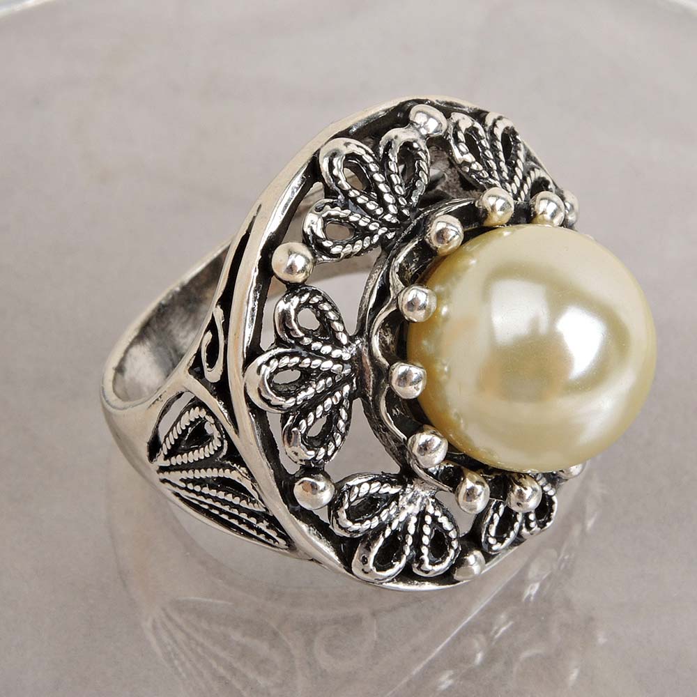 Кольцо с гальваническим покрытием под серебро с акриловым жемчугом