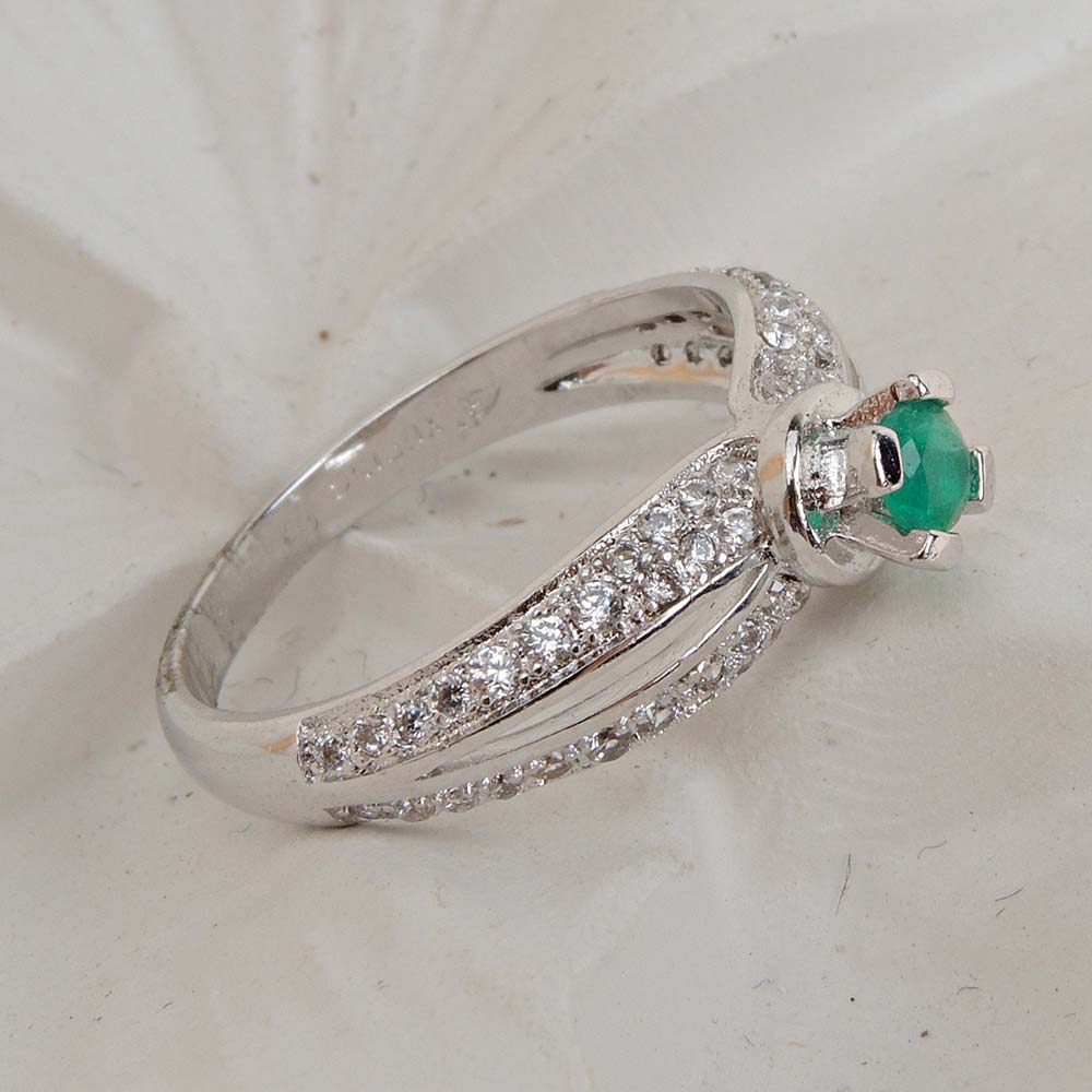 Кольцо с родиевым покрытием с цирконами (фианитами)