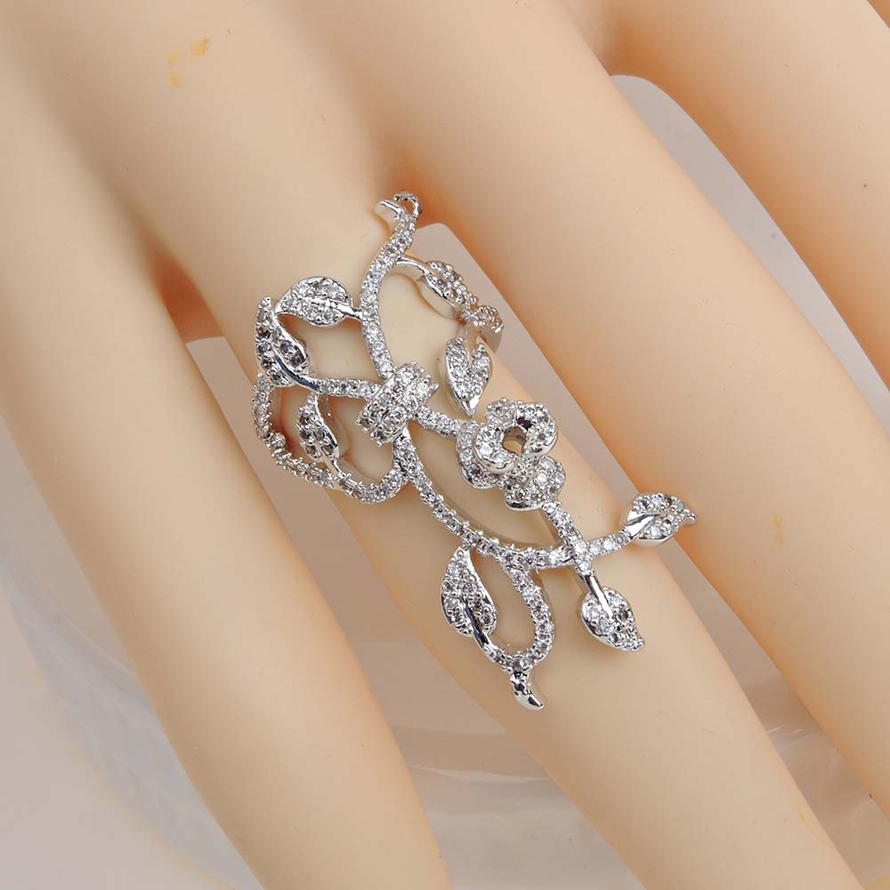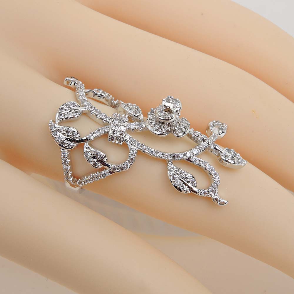Кольцо с родиевым покрытием с цирконами (фианитами)