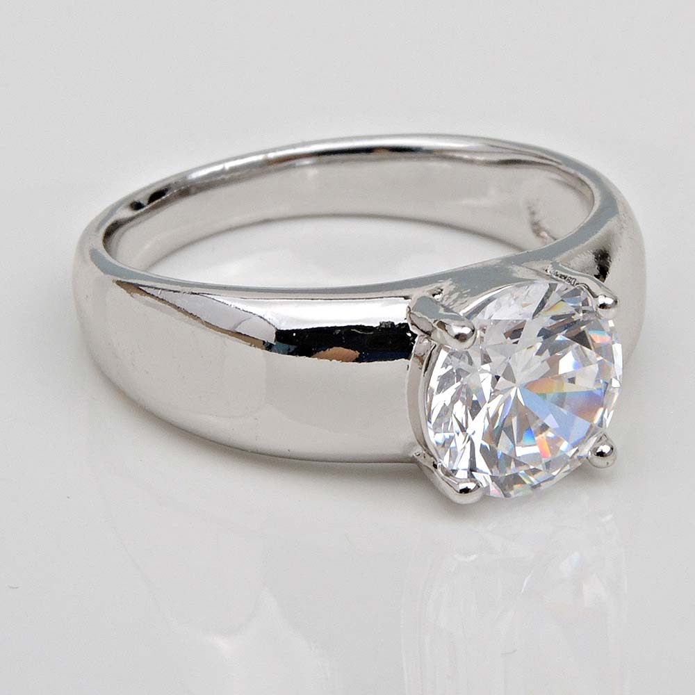 Кольцо с родиевым покрытием с цирконами (фианитами)