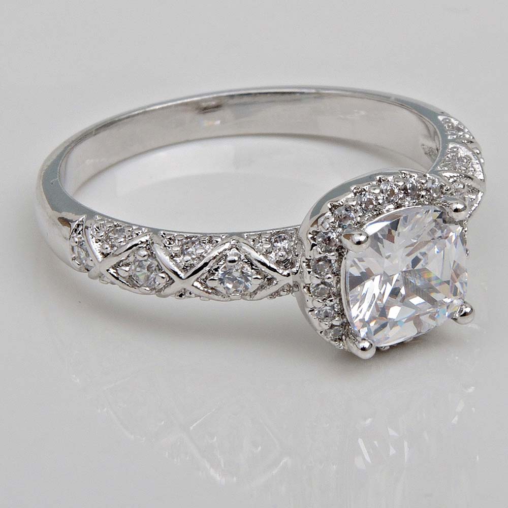 Кольцо с родиевым покрытием с цирконами (фианитами)