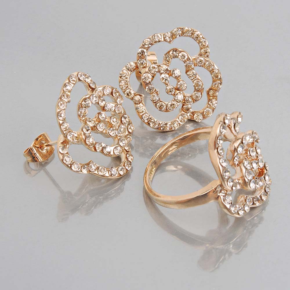 Кольцо/Серьги белое с золотым покрытием 18K 1 мкр со стразами