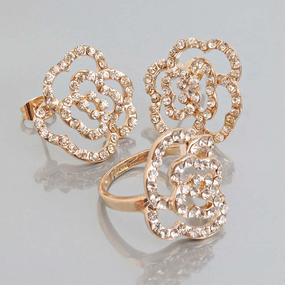 Кольцо/Серьги белое с золотым покрытием 18K 1 мкр со стразами