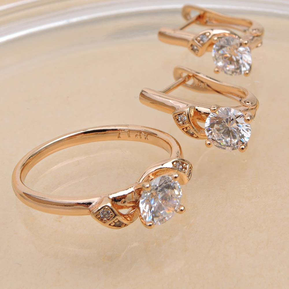 Кольцо/Серьги с английским замком с золотым покрытием 18K 1 мкр с цирконами (фианитами)