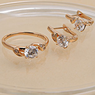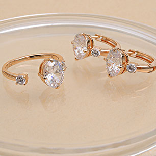 Кольцо/Серьги с английским замком с золотым покрытием 18K 1 мкр с цирконами (фианитами)
