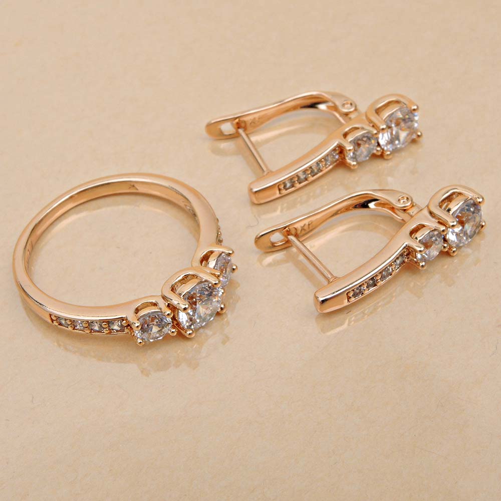 Кольцо/Серьги с английским замком с золотым покрытием 18K 1 мкр с цирконами (фианитами)