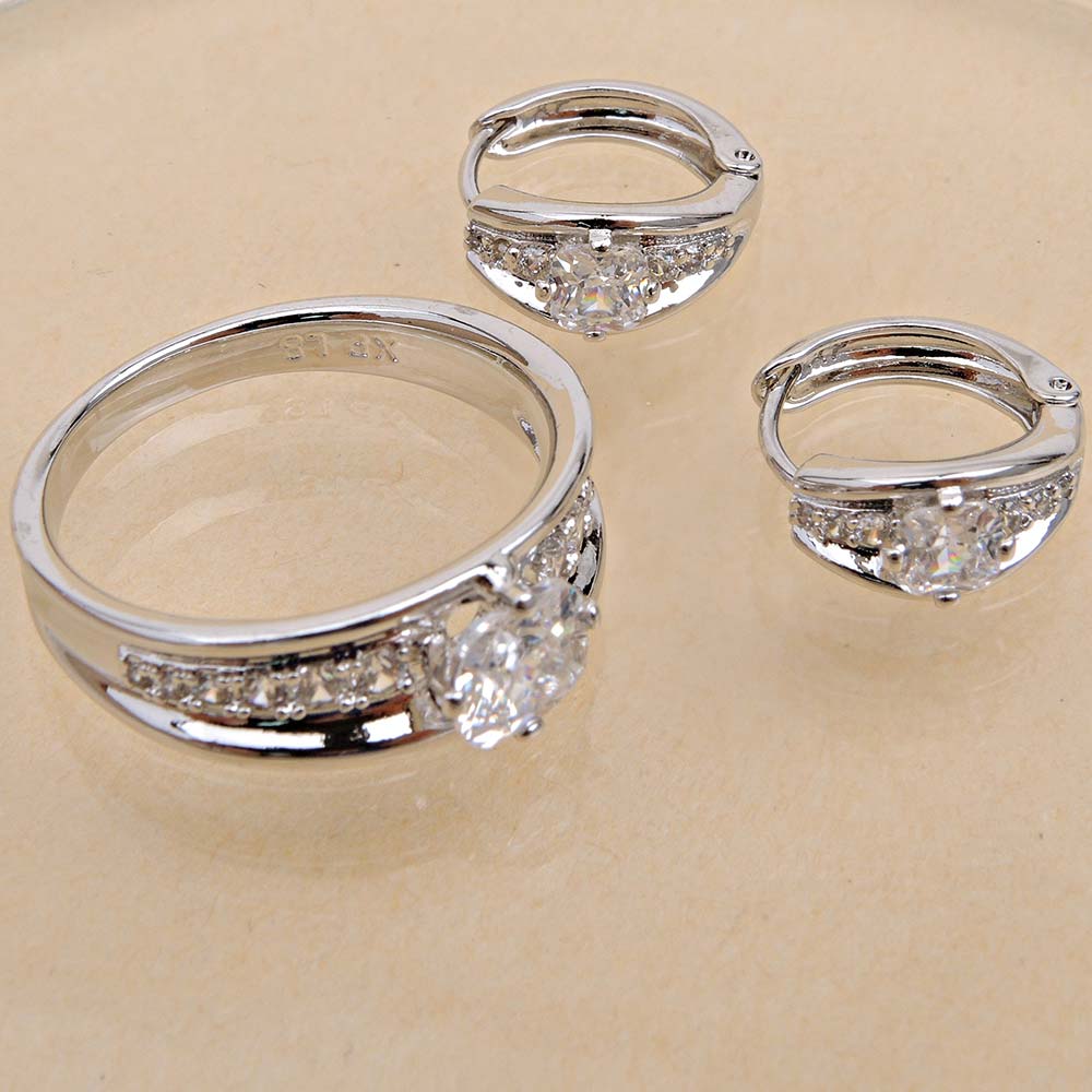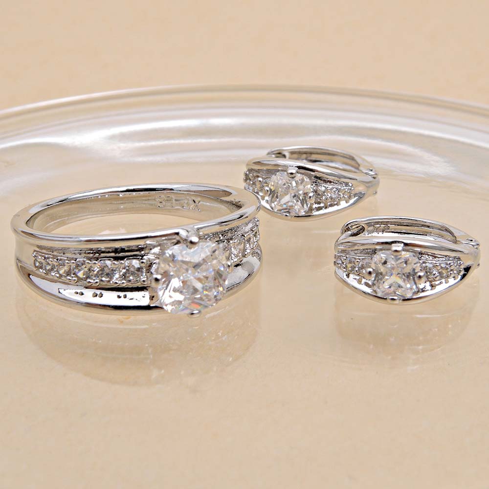 Кольцо/Серьги с замком кольцо с родиевым покрытием с цирконами (фианитами)