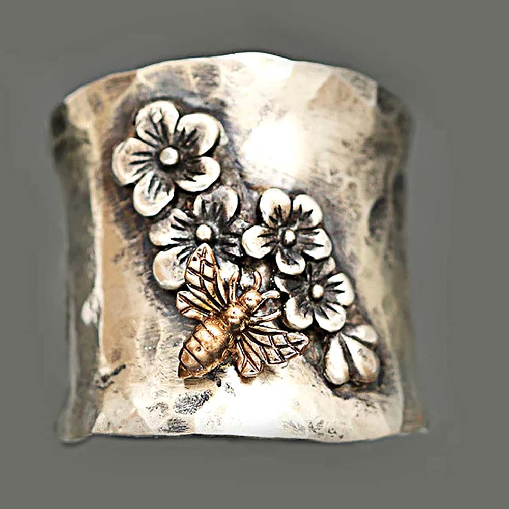 Кольцо в винтажном стиле с гальваническим покрытием под серебро