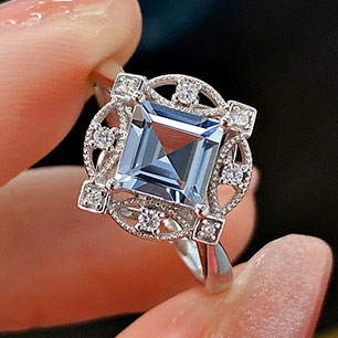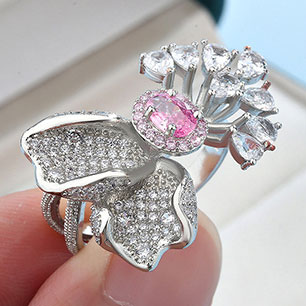Кольцо в винтажном стиле с родиевым покрытием с цирконами (фианитами)