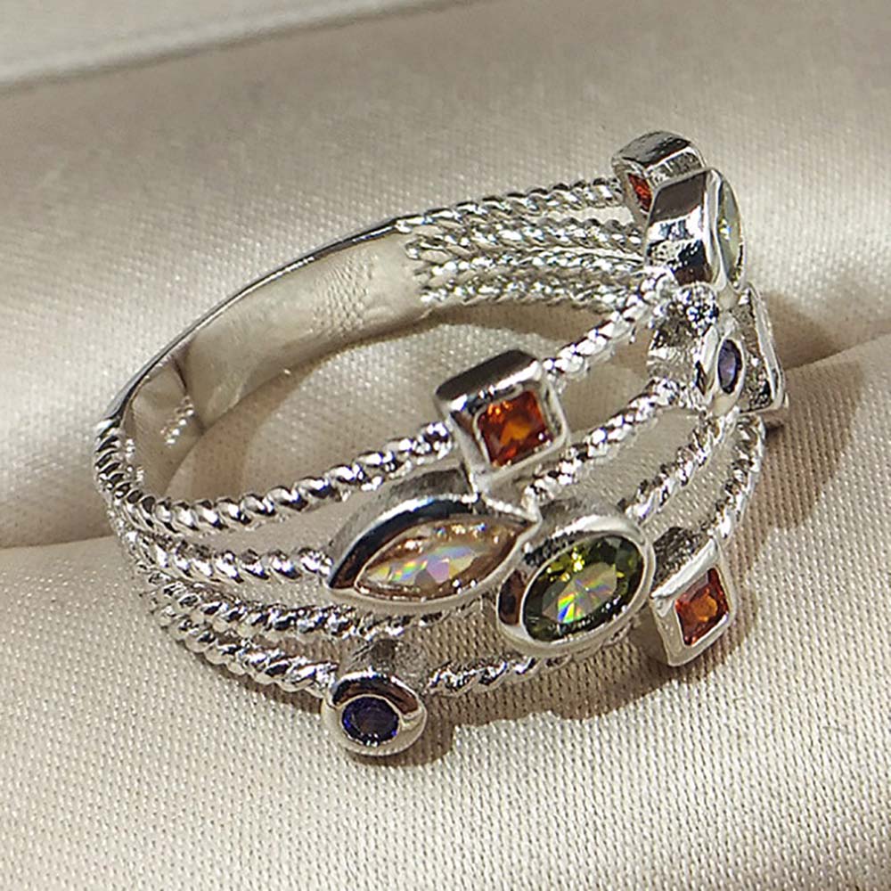 Кольцо в винтажном стиле с родиевым покрытием с цирконами (фианитами)