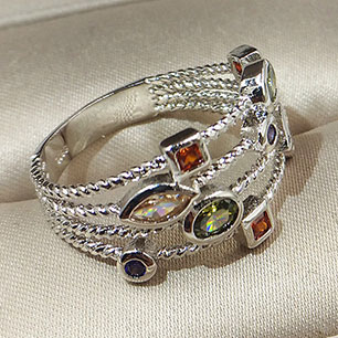 Кольцо в винтажном стиле с родиевым покрытием с цирконами (фианитами)