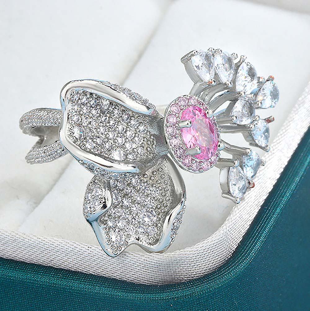 Кольцо в винтажном стиле с родиевым покрытием с цирконами (фианитами)