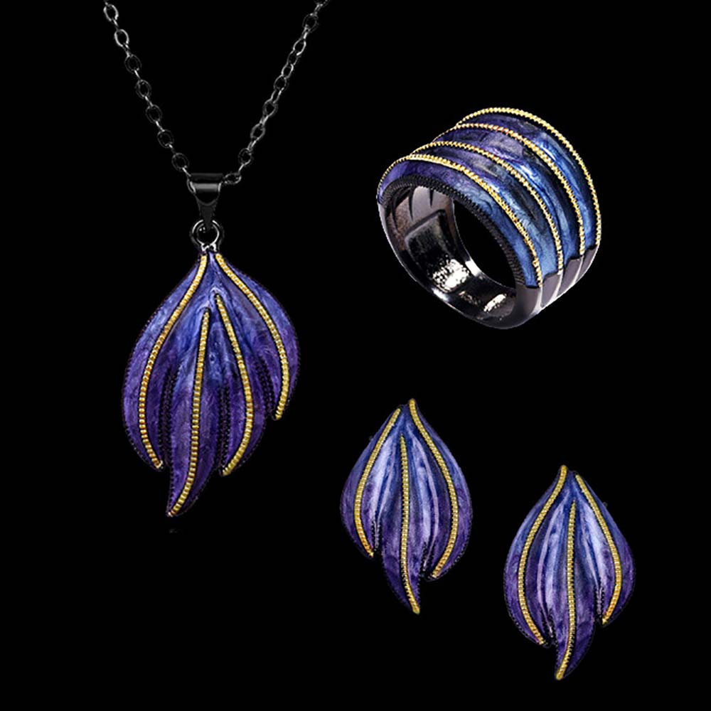 Кольцо в винтажном стиле с родиевым покрытием с эмалью