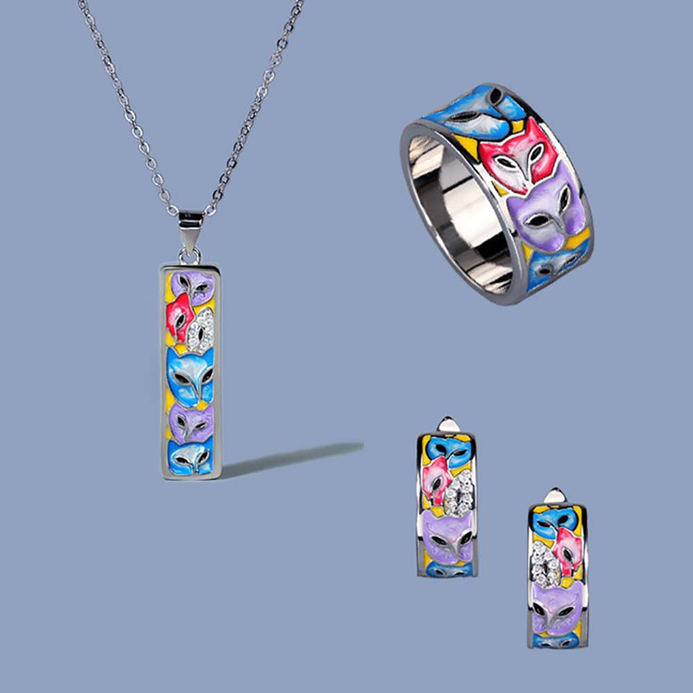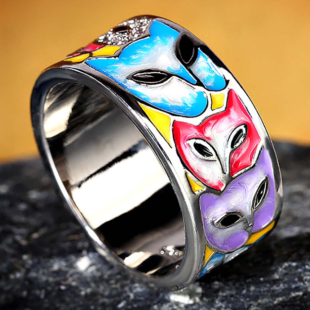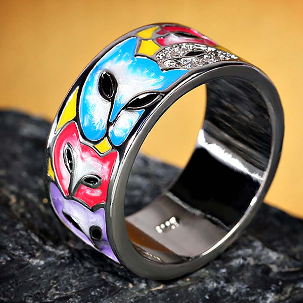 Кольцо в винтажном стиле с родиевым покрытием с эмалью