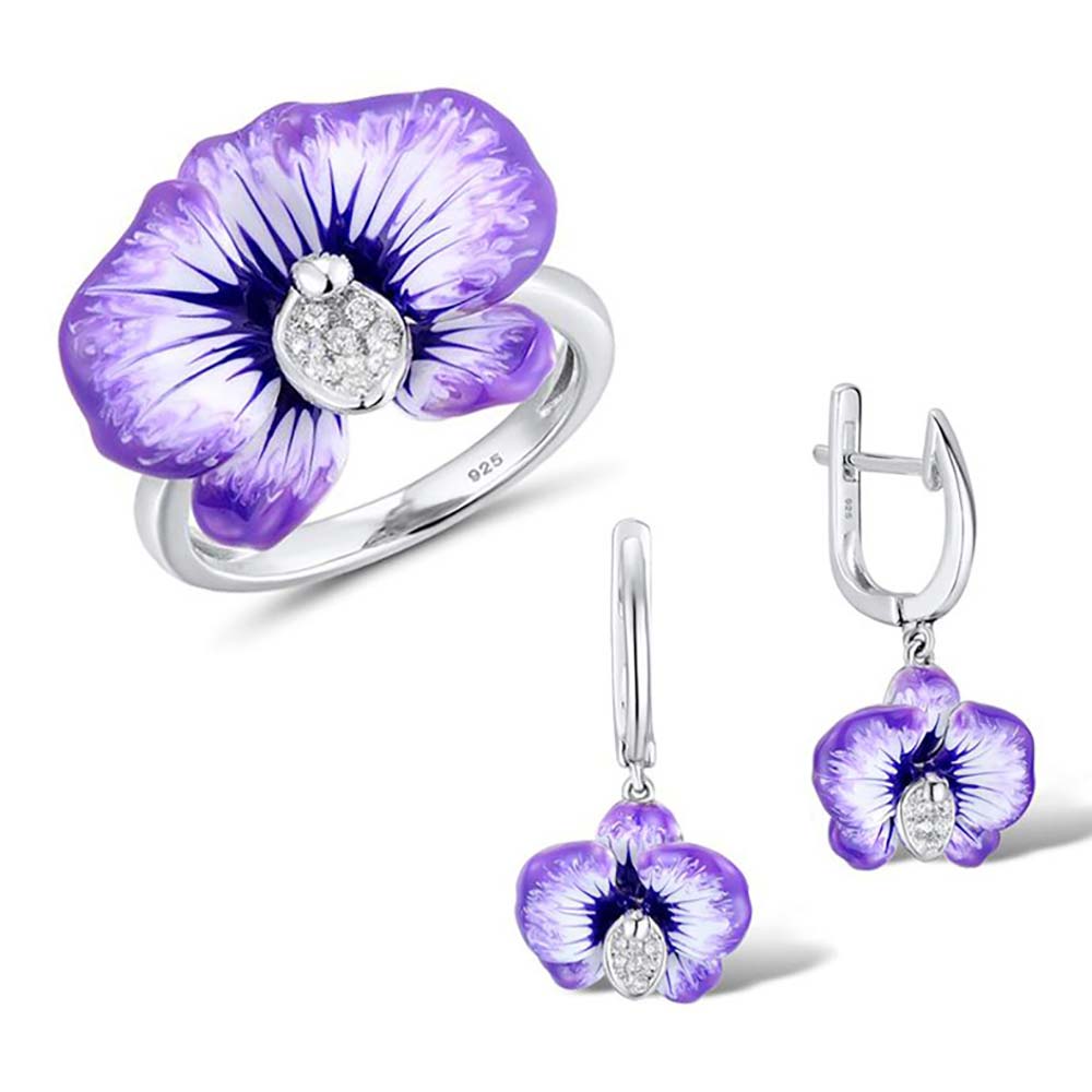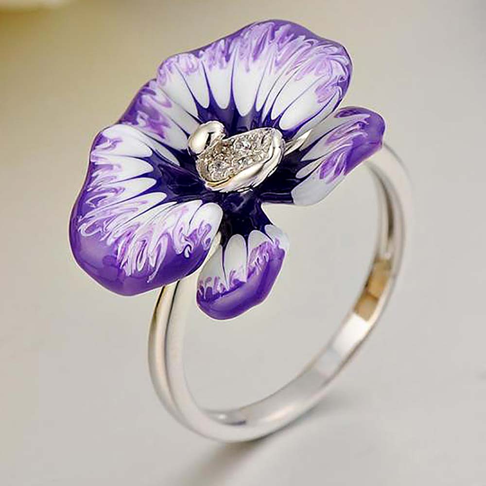 Кольцо в винтажном стиле с родиевым покрытием с эмалью