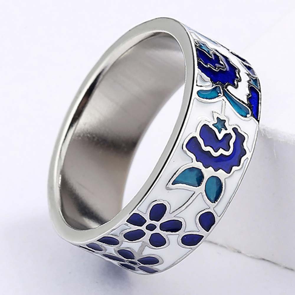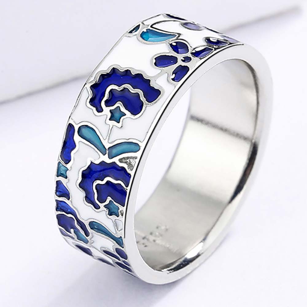 Кольцо в винтажном стиле с родиевым покрытием с эмалью
