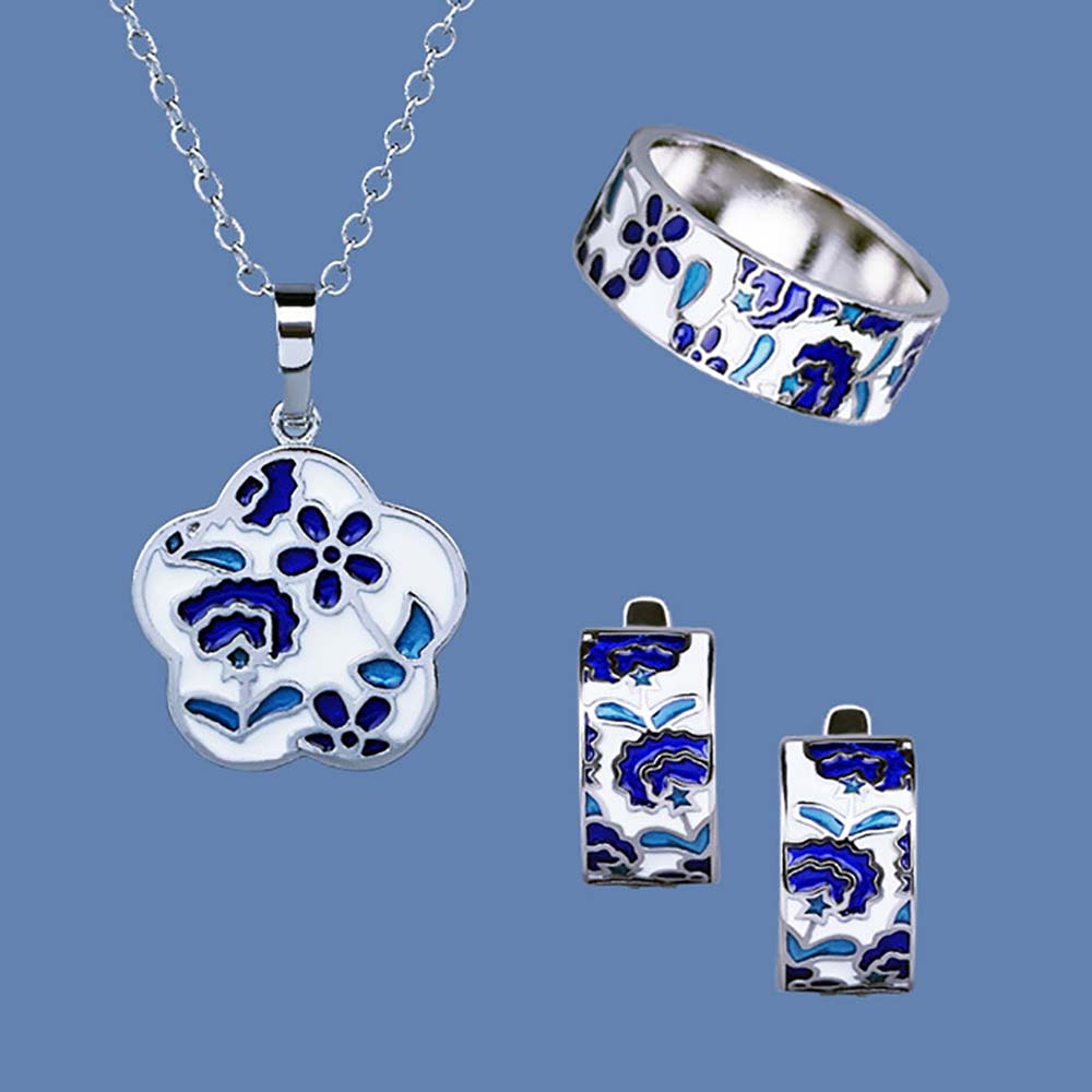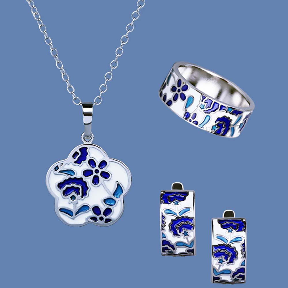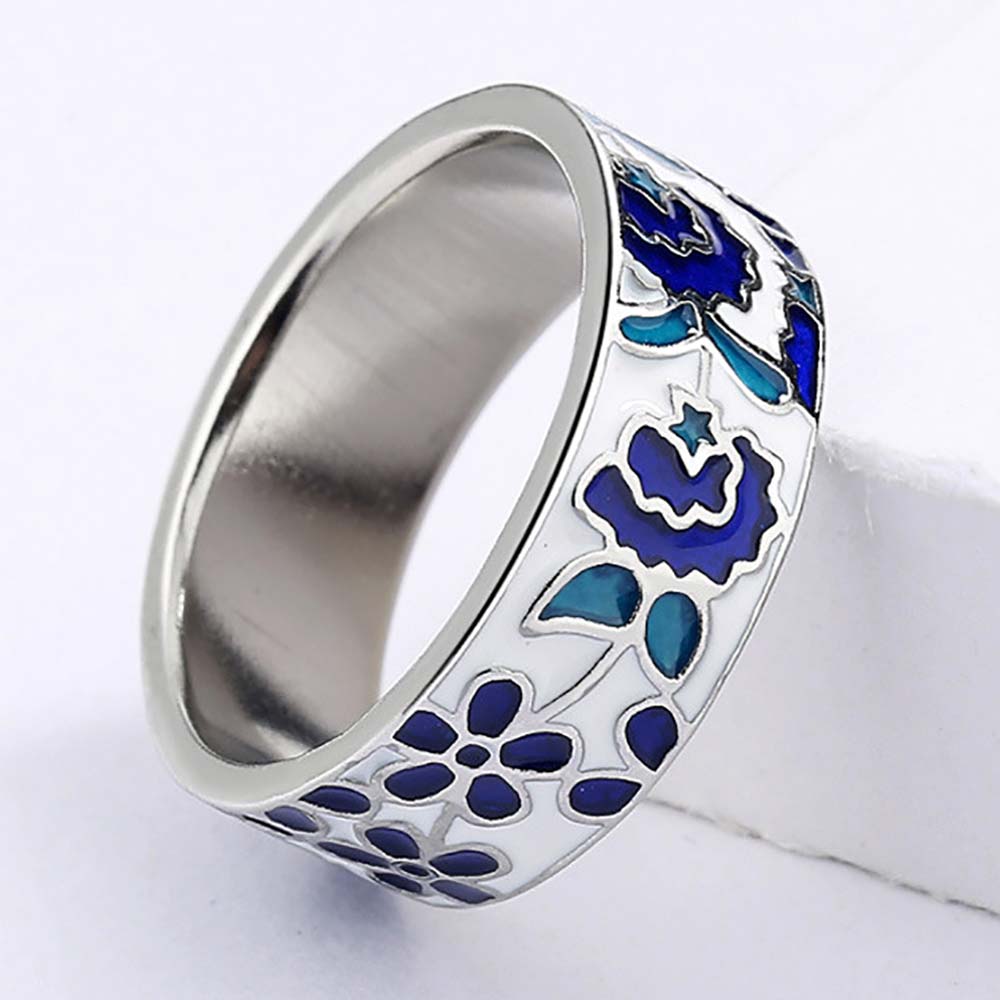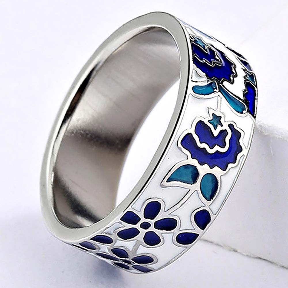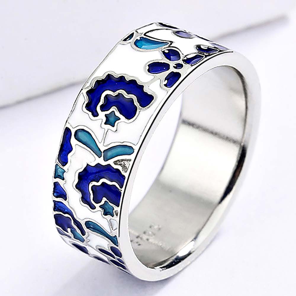 Кольцо в винтажном стиле с родиевым покрытием с эмалью