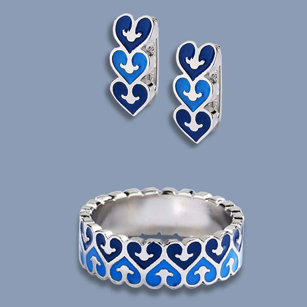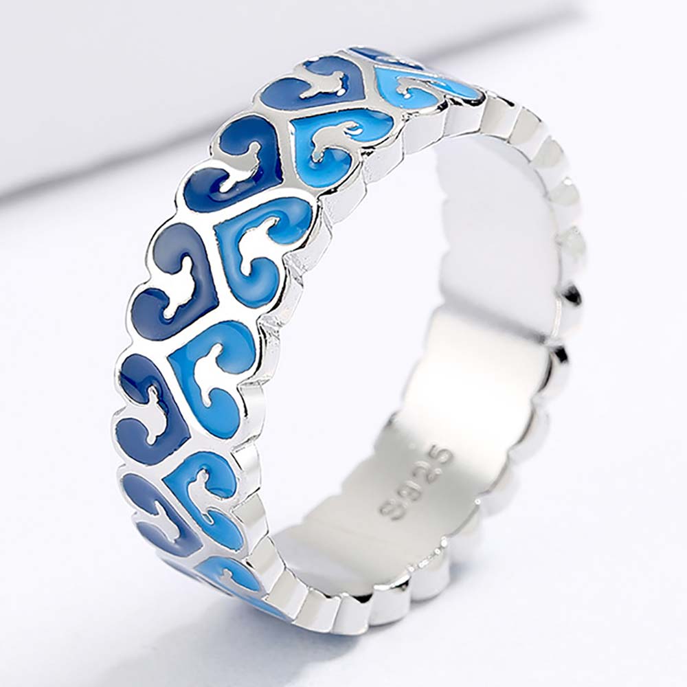 Кольцо в винтажном стиле с родиевым покрытием с эмалью