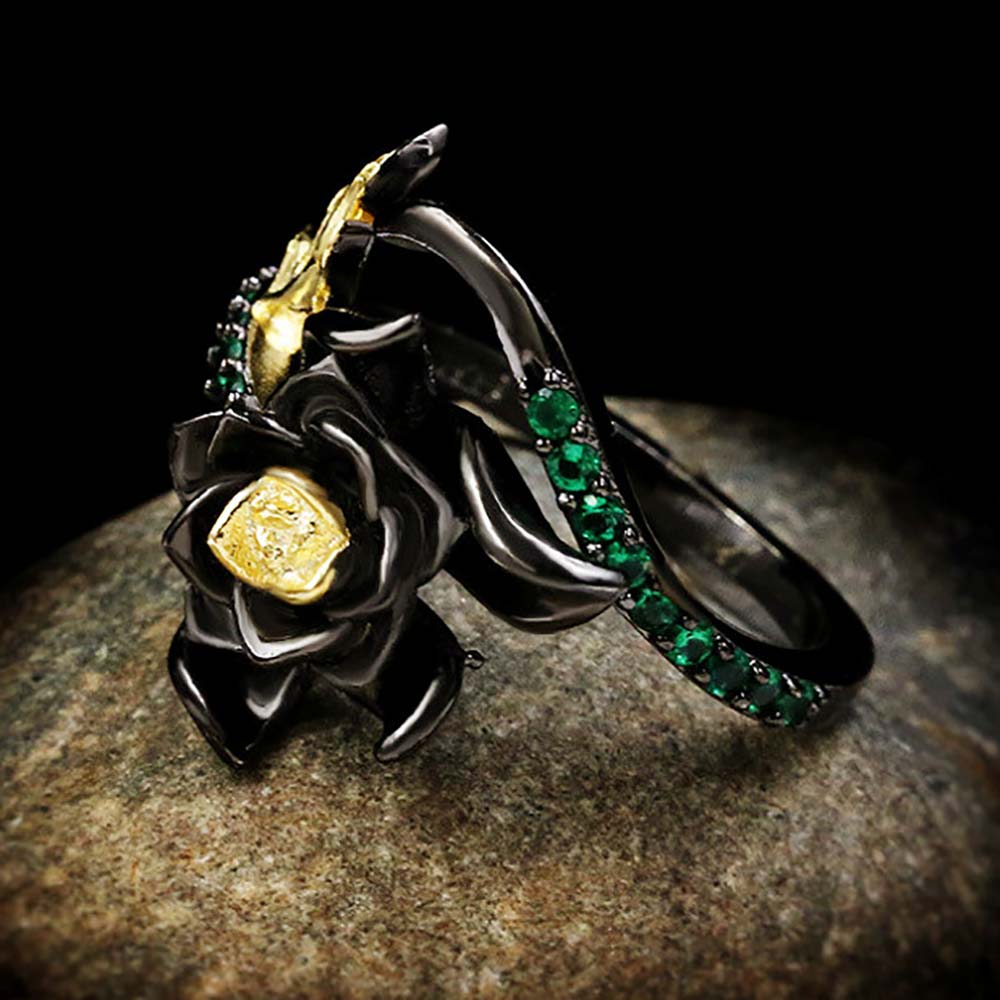 Кольцо в винтажном стиле с золотым покрытием 14K 1 мкр с цирконами (фианитами)