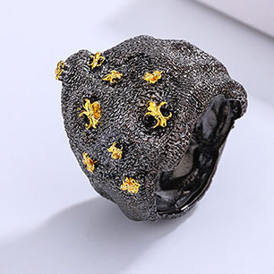 Кольцо в винтажном стиле с золотым покрытием 14K 1 мкр с цирконами (фианитами)