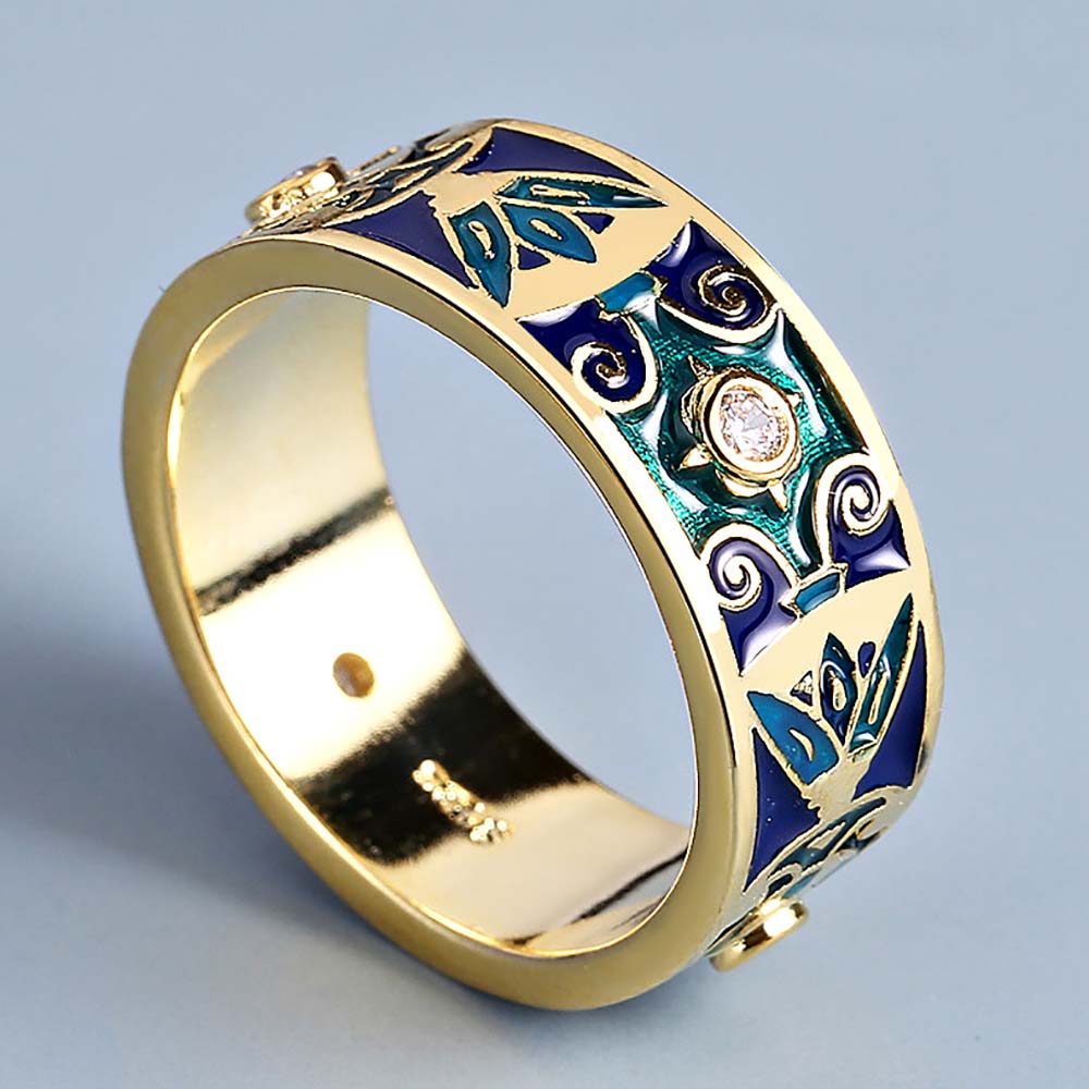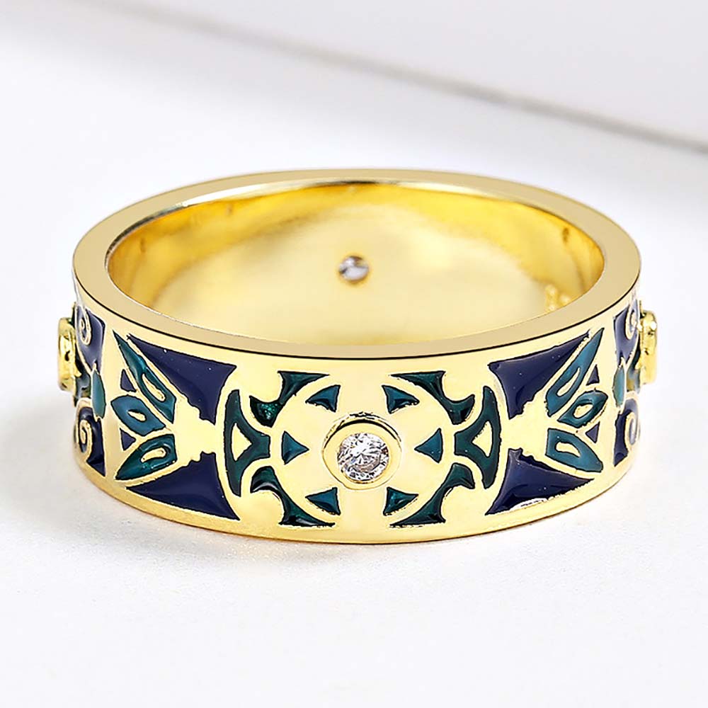 Кольцо в винтажном стиле с золотым покрытием 14K 1 мкр с цирконами (фианитами)