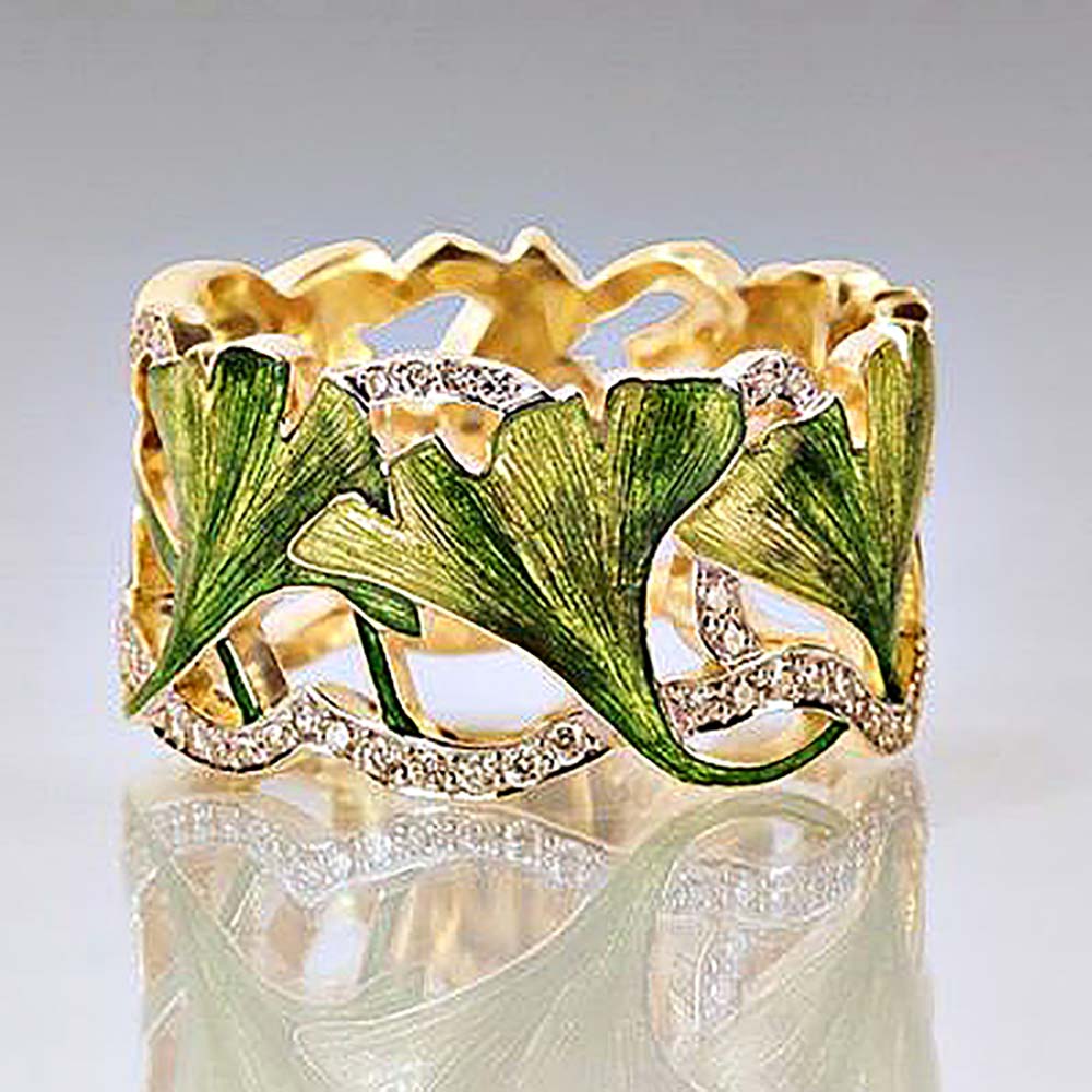 Кольцо в винтажном стиле с золотым покрытием 14K 1 мкр с цирконами (фианитами)