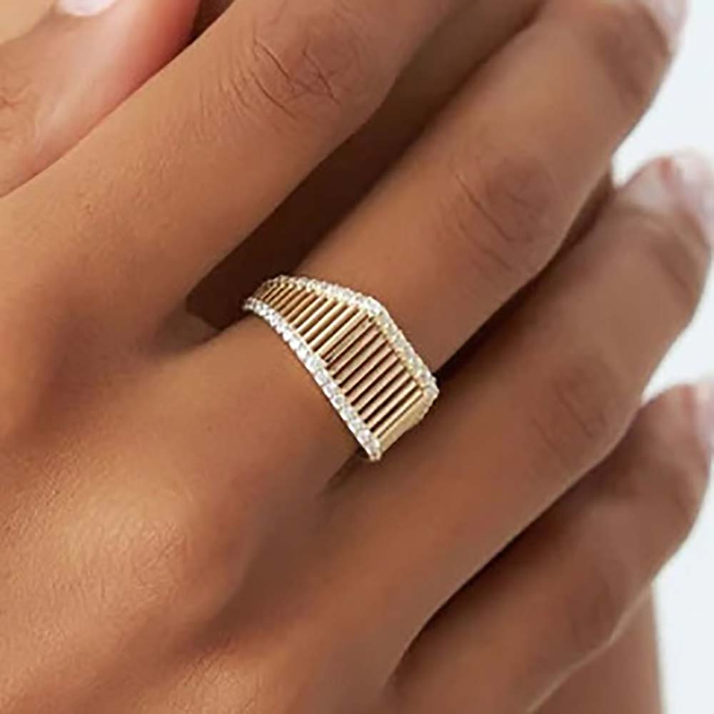 Кольцо в винтажном стиле с золотым покрытием 14K 1 мкр с цирконами (фианитами)