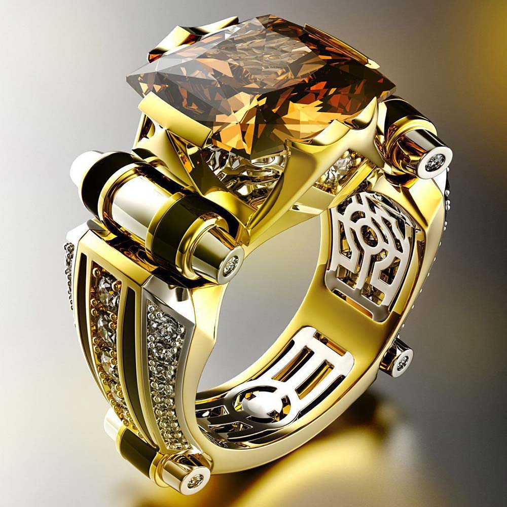 Кольцо в винтажном стиле с золотым покрытием 14K 1 мкр с цирконами (фианитами)
