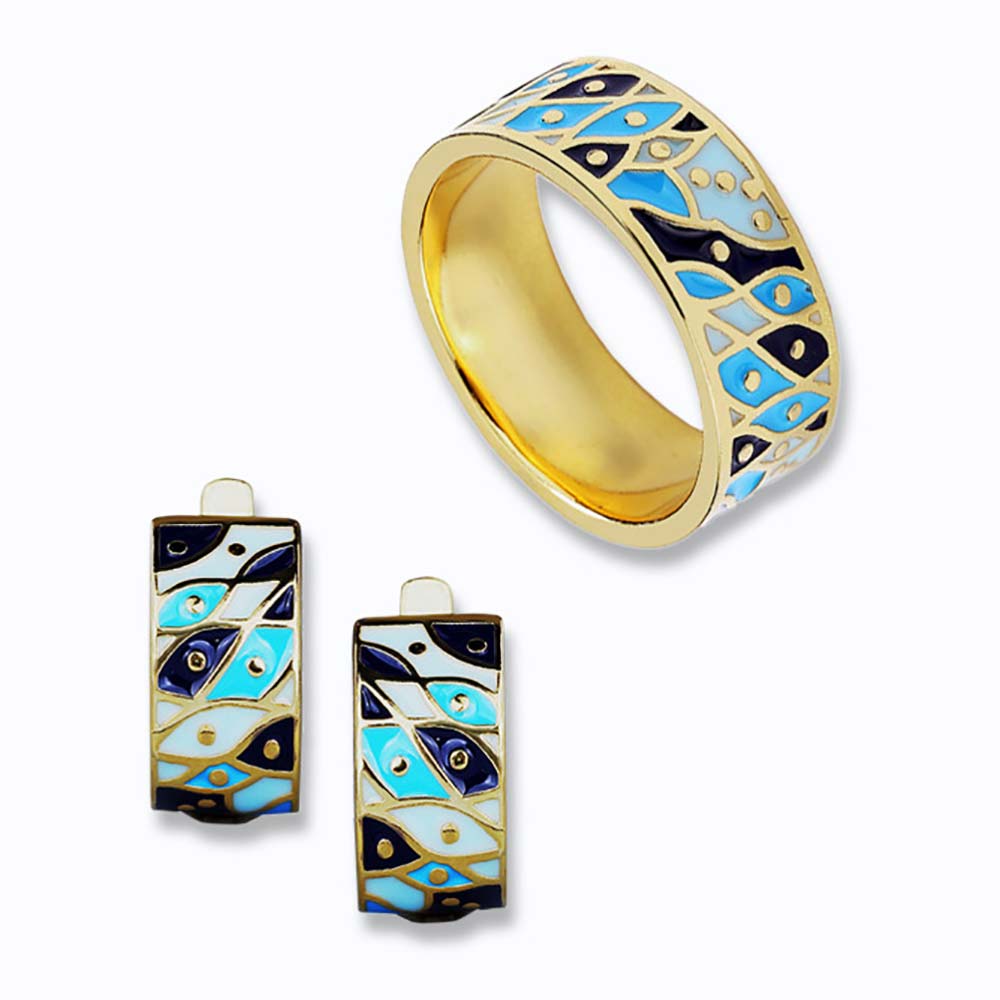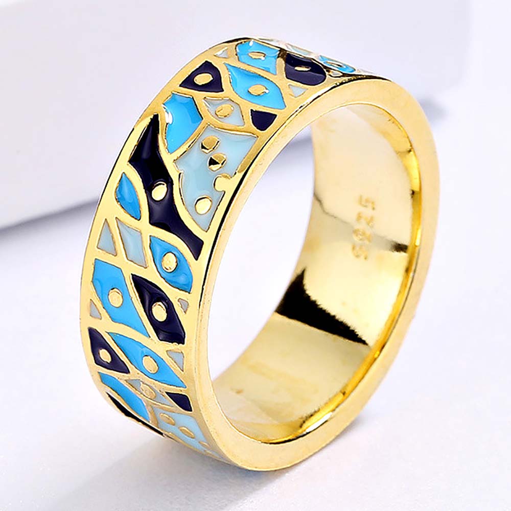 Кольцо в винтажном стиле с золотым покрытием 14K 1 мкр с эмалью