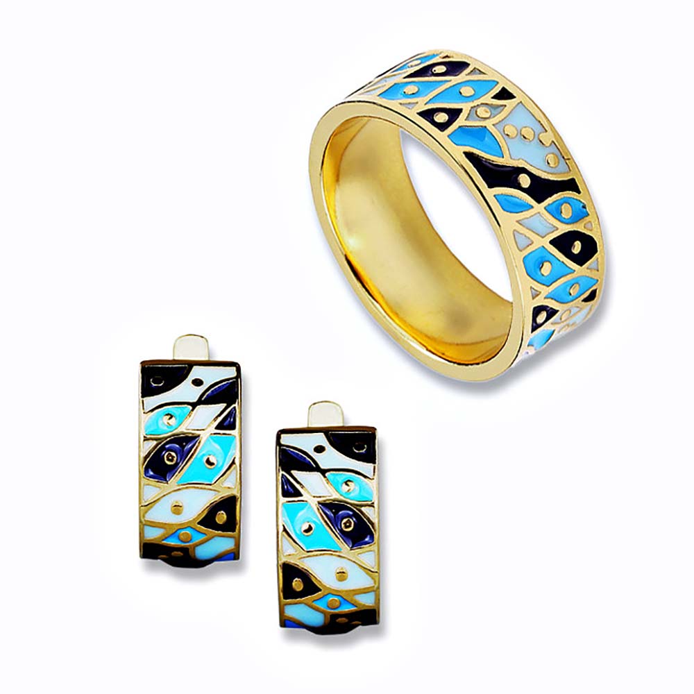 Кольцо в винтажном стиле с золотым покрытием 14K 1 мкр с эмалью