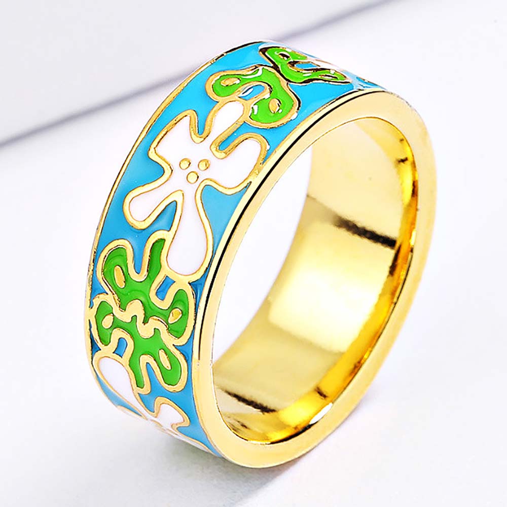 Кольцо в винтажном стиле с золотым покрытием 14K 1 мкр с эмалью