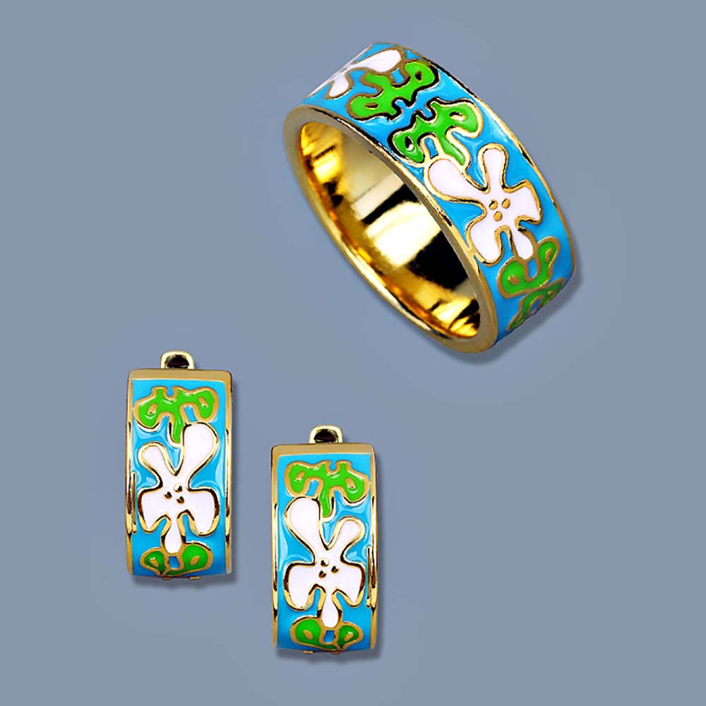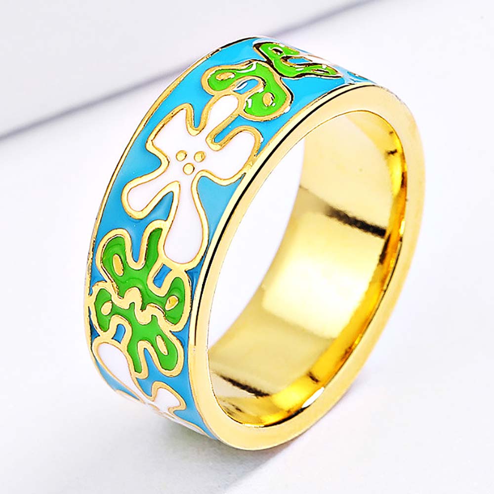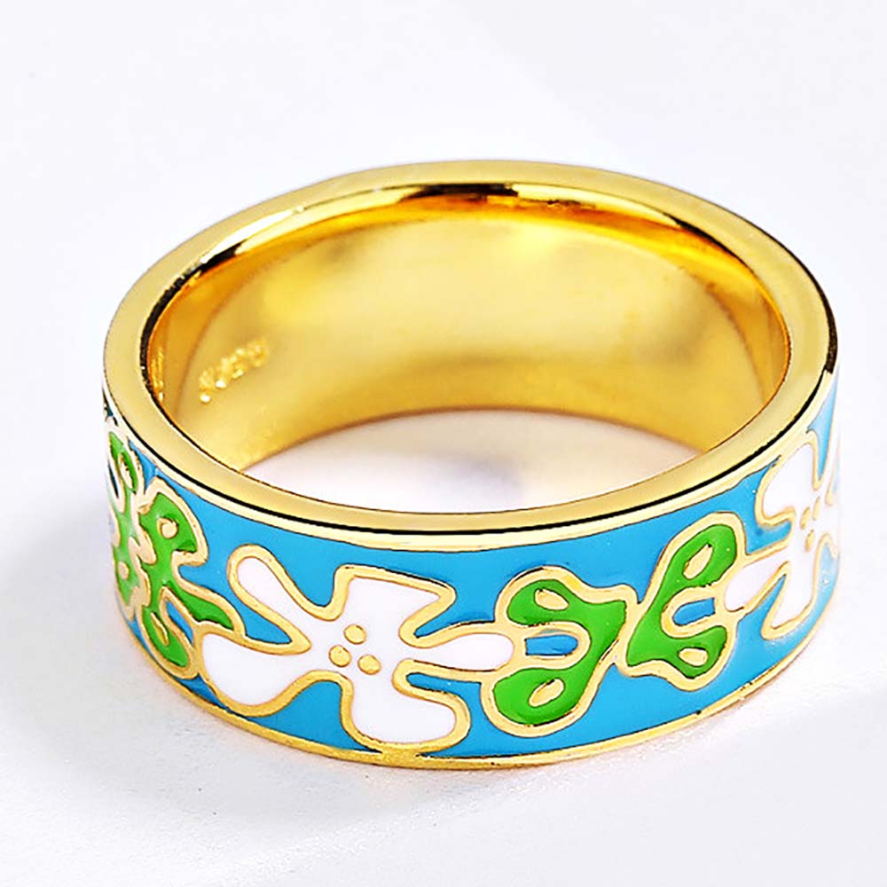 Кольцо в винтажном стиле с золотым покрытием 14K 1 мкр с эмалью