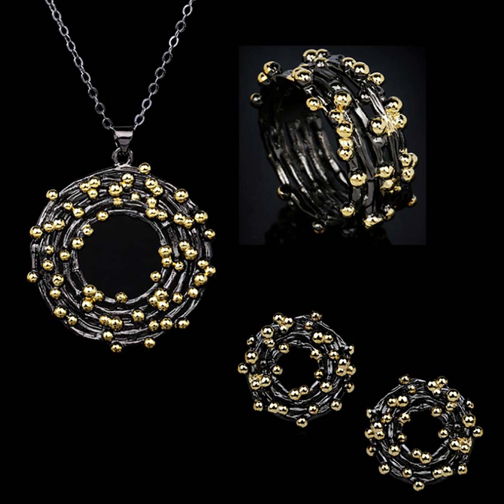 Кольцо в винтажном стиле с золотым покрытием 14K 1 мкр с эмалью